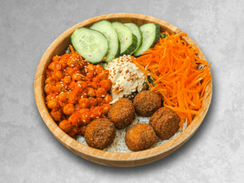 mit Falafel, Hummus, Kichererbsen mariniert in...