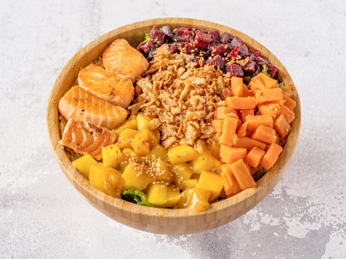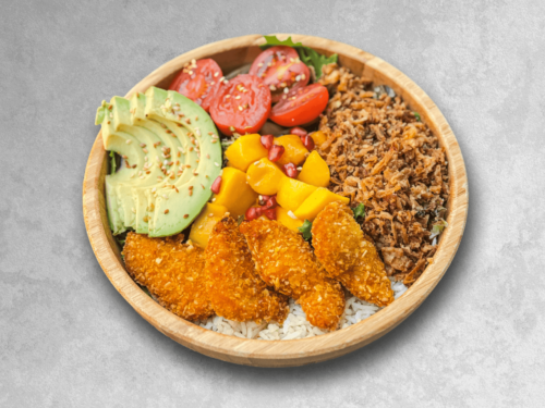 mit Crunchy Chicken, Granatapfelkerne, Mango,...