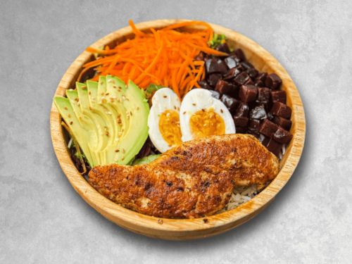 Mit HÃĪhnchenbrustfilet, Avocado, Ei, rote...