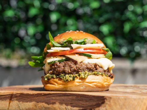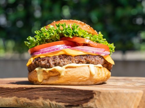 Beef-Patty, Cheese, Zwiebeln und Beef&Bun...
